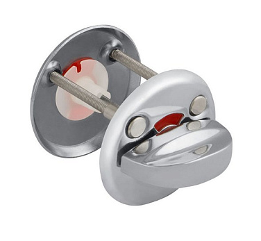 Накладка двусторонняя. На активной части находится завертка («барашек»), с ее помощью вы управляете межкомнатным замком. На пассивной есть паз для разблокировки замка монетой в SOS-ситуациях (если человеку внутри стало плохо, заклинил механизм и т. д).