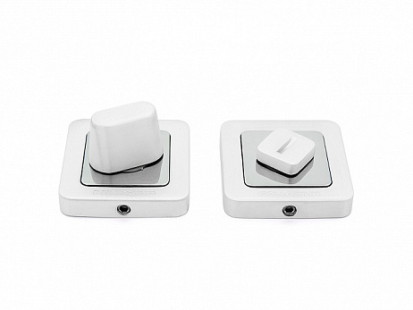 Квадратная накладка-фиксатор для дверных ручек Palladium из коллекции Element. Состоит из двух частей. На активной расположена завертка («барашек»). На ответной – паз для аварийной разблокировки замка монетой или любым плоским предметом.