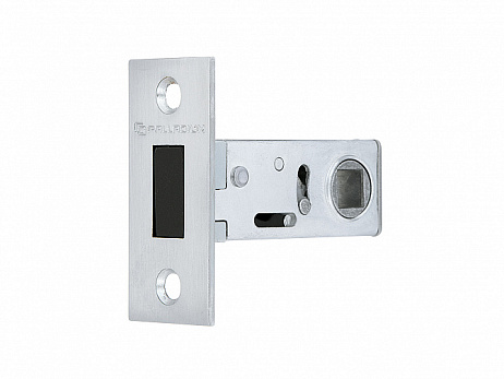 Защелка межкомнатная серии 100 M. Механизм оснащен магнитным пластиковым язычком обеспечивающим мягкое открывание и закрывание двери. Гарантированное количество циклов безотказной работы узлов защелки более 150000. Качество гальванического покрытия подтверждено тестом на устойчивость в камере соляного тумана - более 96 часов.