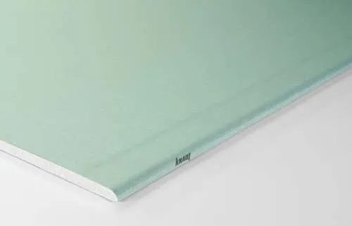 Гипсокартон Кнауф влагостойкий 12,5 мм (Кнауф-лист влагостойкий ГСП-Н3) применяется для устройства систем подвесных потолков, облицовки и выравнивания стен, сооружения межкомнатных перегородока также для создания дизайнерских, декоративных элементов и конструкций. Он подходит для монтажа внутри сухихи помещений, а также с повышенной влажностью. Материал представляет собой прямоугольное изделие, которое состоит из гипсового сердечника с добавками для повышения влагостойкости, облицованного качественным картоном. По краям листы завальцованы, а полукруглая кромка обеспечивает возможность создания надежного и прочного стыка между гипсокартоном.