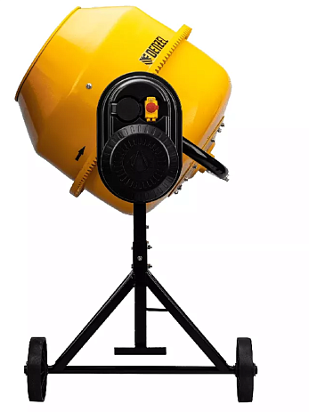 Бетоносмеситель DENZEL с объемом бака на 130 литров позволяет получить не менее 50 литров смеси.
