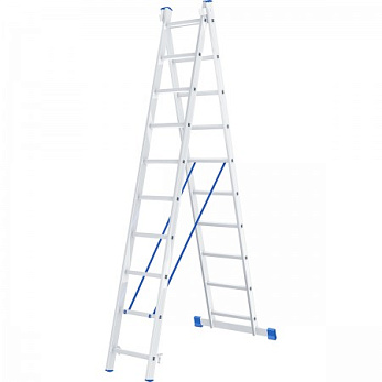 Лестница, 2х10 ступеней, алюминиевая, двухсекционная (5,3 м), Сибртех