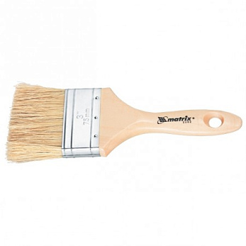 Ворс кисти из натуральной щетины двойной выварки. Щетина расщеплена на концах. Толщина кисти от 10,5 до 22 мм. Щетина кисти надежно закреплена металлическим бандажом с антикоррозийным покрытием. Деревянная лакированная ручка с отверстием для подвешивания имеет эргономичную форму, которая делает работу комфортной. Кисть предназначена для работ с масляными красками и лаками, устойчива к агрессивным составам.