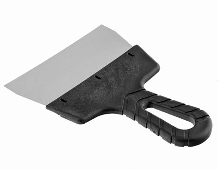 Полотно шпателя изготовлено из нержавеющей стали. Облегченная ручка из ударопрочной пластмассы. Ручка шпателя имеет специальную (изогнутую) форму, что обеспечивает максимально удобную работу. Шпатель предназначен для нанесения, выравнивания и сглаживания шпаклевочного слоя на больших и малых поверхностях.