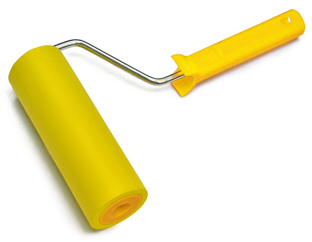 Прижимной валик изготовлен из высокопластичной пористой резины. Ручка валика из ударопрочной пластмассы, имеет эргономичную форму. Стержень ручки никелирован и защищен от коррозии.