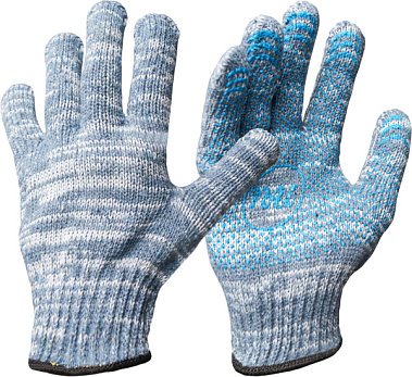 Точечное покрытие ПВХ на ладонях надёжно закреплено и длительное время не осыпается, сохраняя противоскользящие свойства утеплённых рабочих перчаток.