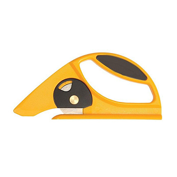Нож для напольных покрытий с дисковым лезвием. Лезвие быстро фиксируется прижимным винтом. Прямолинейность реза обеспечивается направляющей. Оригинальность конструкции обуславливает длительный срок службы.