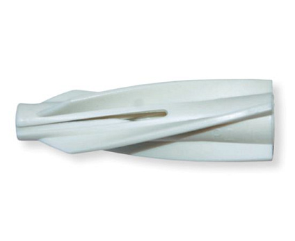 Дюбель для газобетона имеет спиралевидные витки, которые обеспечивают равномерное распределение давления в материале. Главное достоинство такого крепежа – быстрый монтаж. Достаточно просверлить отверстие и вбить в него пластиковый элемент. Такой вариант подходит для фиксации нетяжеловесных элементов: декоративных светильников, держателей для водосточных труб, телевизоров, легких подвесных конструкций.