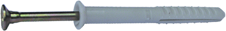 Закрепить строительные материалы и готовые изделия к различным конструкциям из бетона, камня, кирпича поможет дюбель-гвоздь потай. Это современное, универсальное изделие обеспечивает не только высоконадежную фиксацию, но и быстрый монтаж. В отличие от стандартной пары дюбель+шуруп данный крепеж не закручивается, а забивается молотком. Гвоздь имеет резьбовую насечку по длине и шлицы (крестообразные) на шляпке. Такая особенность позволяет подтягивать, ослаблять и в случае необходимости демонтировать соединение отверткой, либо шуруповертом. Прочность крепежа достигается расклиниванием дюбеля в отверстии гвоздем в момент удара. Применяется данная технология для монтажа дверных коробок, кабельных каналов, металлической/брусковой обрешетки, оконных рам (древесина, пластик), листовых материалов (гипсокартон, ГВЛ) и т.д.