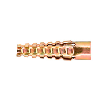 Состоит из нераспорной цилиндрической шейки и распорных сегментов с зубцами. При вкручивании шурупа происходит распирание стенок дюбеля в просверленном отверстии. Ребристая поверхность дюбеля обеспечивает надежную фиксацию крепежного элемента.