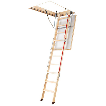 Деревянная чердачная лестница Fakro LWK Plus изготовлена из сосны высшего качества и укомплектована утепленной крышкой, облицованной ДВП белого цвета. Оборудована удобным боковым металлическим поручнем.