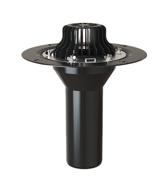 • Комплектация: Листвоуловитель, Фланец металлический, Комплект крепежа, Основание воронки