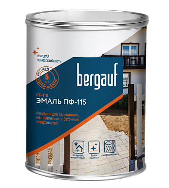 Эмаль ПФ-115 Bergauf ГОСТ предназначена для окрашивания деревянных, металлических, оштукатуренных поверхностей, эксплуатирующихся в атмосферных условиях и внутри помещений. Покрытие является износостойким, устойчивым к воздействию атмосферных явлений и моющих дезинфицирующих средств.