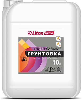 Грунтовка универсальная Литокс ULTRA - модифицированная на акриловой основе, глубоко проникающая, готовая к применению, используется в качестве связующего и укрепляющего рабочую поверхность состава, предназначена для высококачественного грунтования внутри и снаружи помещений по пористым, непрочным, сильно впитывающим основаниям, по ГКЛ, гипсовым, цементным и цементно-известковым штукатуркам, бетону, кирпичу с целью подготовки поверхности к покраске и перед проведением гидроизоляционных и теплоизоляционных работ.
