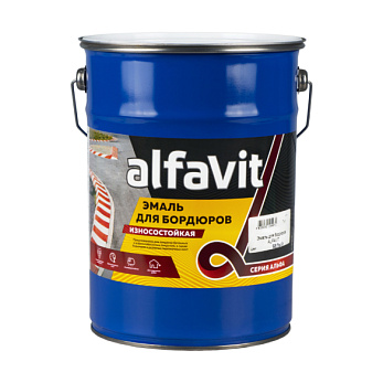 Краска для бордюрного камня Альфа АЛФАВИТ предназначена для покраски любых бетонных и асфальтобетонных покрытий: бордюрного камня, для разметочной окраски бордюров автомобильных дорог, шоссе, покраски бетонных ограждений и дорожных столбов.