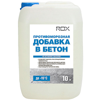 Купить противоморозную добавку для бетона и строительных растворов, предназначена для ускорения набора прочности бетона и растворов на цементно-песчаной основе в условиях отрицательных температур (до -15°С). Противоморозная добавка в бетон ROX также повышает качественные характеристики бетонов и растворов в проектном возрасте.