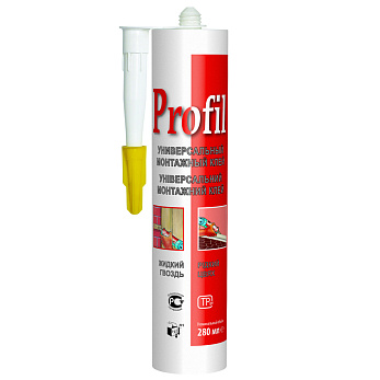Универсальный монтажный клей Profil представляет собой быстроотверждающийся состав кремового цвета на основе синтетического каучука и неагрессивных растворителей.