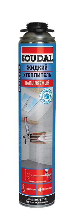 Утеплитель напыляемый Соудал Gun универсальный однокомпонентный полиуретановый жидкий утеплитель в аэрозоле для быстрых термоизоляционных работ в помещений бытового и хозяйственного назначения. Утеплитель может быть нанесен на любую поверхность, включая вертикальные поверхности и поверхности с отрицательным наклоном (внутренние поверхности скатов крыш и т.п.)