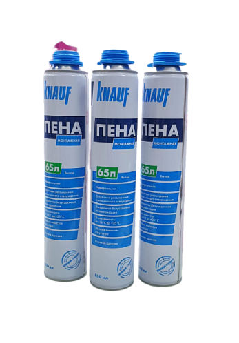 Пена Кнауф монтажная - предназначена для монтажа окон, дверных проемов, подоконников, крепления стеновых панелей, герметизация щелей, пустот, а также для других строительных отделочных и монтажных работ.