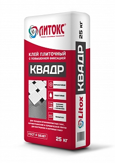 Плиточный цементный клей Литокс Квадр (С1 Т) предназначен для укладки крупноформатных плит из природного камня и керамогранита по подготовленным строительным основаниям (кирпич, бетон, цементная и гипсовая штукатурка, цементная стяжка, ГКЛ, ГВЛ, ЦСП), в том числе плитка на плитку.
