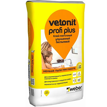 Плиточный клей Weber.Vetonit Profi Plus (С1 Т) подходит для керамической плитки и керамогранита.