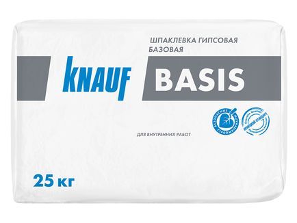 Шпаклевка гипсовая базовая КНАУФ-Базис используется для сплошного базового шпаклевания внутри помещений гипсокартонных и гипсоволокнистых листов, гипсовых пазогребневых плит, бетонных и оштукатуренных поверхностей.