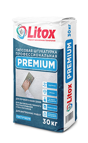 Литокс Premium универсальная штукатурка на основе гипсового вяжущего, легких заполнителей и полимерных добавок. Смесь предназначена для высококачественного оштукатуривания стен и потолков из бетона, кирпича, газосиликатных и цементных блоков и других минеральных недеформирующихся оснований в отапливаемых помещениях с нормальной влажностью. Для ручного нанесения. Для внутренних работ. Работы с применением смеси производятся при температуре воздуха и основания от +5°C до +30°C во всех климатических зонах.
