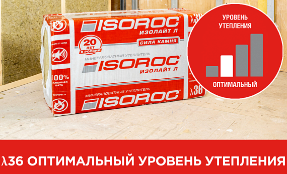 Теплоизоляция Изорок Изолайт-Л (40 кг/м3) 1000х600х100 (2,4 м2/0,24 м3/4 шт)