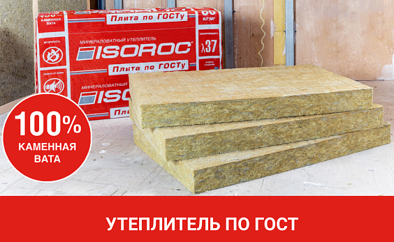 Теплоизоляция Изорок ПП-80 (80-90 кг/м3) 1000х600х100 (1,8м2/0,18 м3/3 шт)