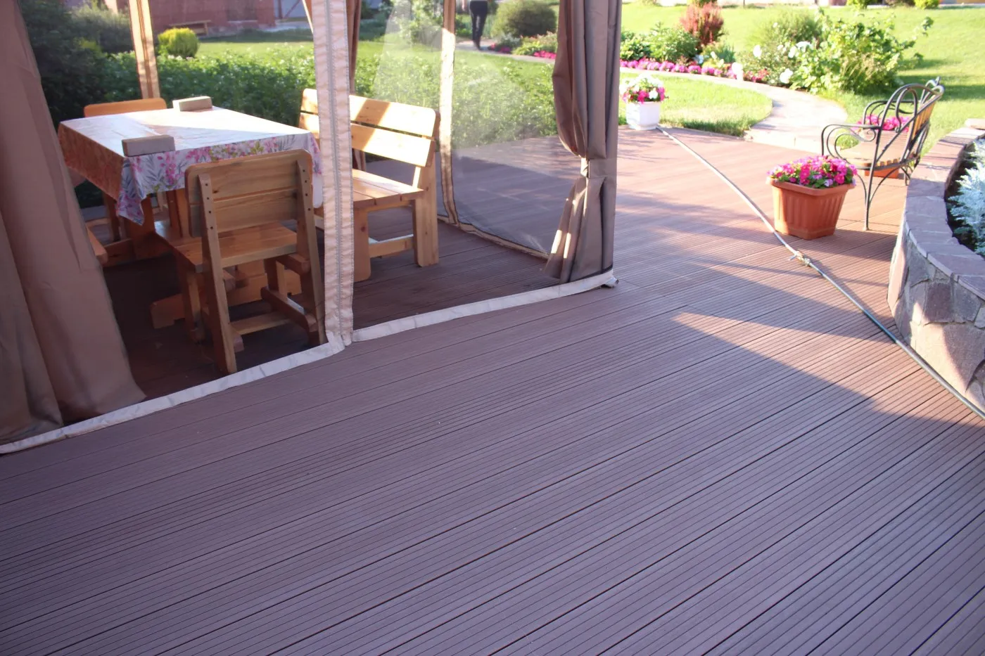 Террасная доска из ДПК проста в монтаже, не требует обработки специальными средствами в период эксплуатации, подходит и для частного, и для коммерческого использования.