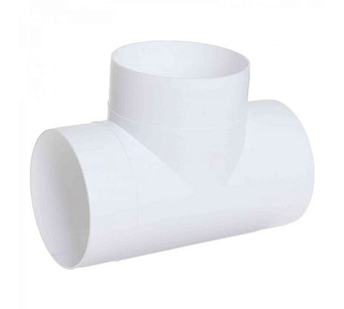Тройник предназначен для соединения трех пластиковых воздуховодов сечением 100 мм под углом 90°. Воздуховоды и тройник соединяются напрямую, каналы одеваются сверху на патрубки соединителя.