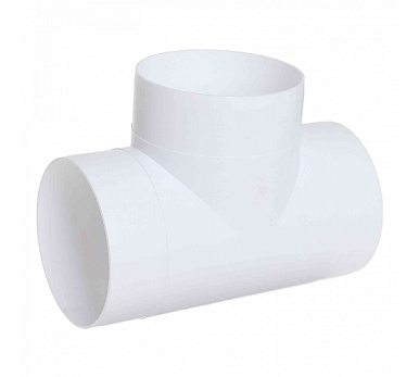 Тройник предназначен для соединения трех пластиковых воздуховодов сечением 125 мм под углом 90°. Воздуховоды и тройник соединяются напрямую, каналы одеваются сверху на патрубки соединителя.