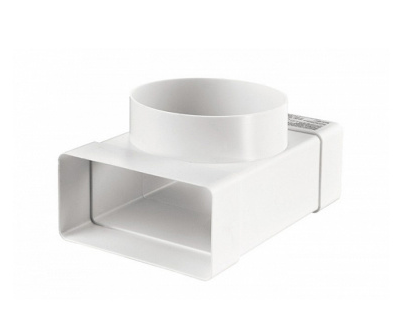 Пластиковые плоские соединители c круглым выходом, расположенным по центру под углом 90°. Используются в системах вентиляции для разветвления линии воздуховодов. Плоские выходы соединяются напрямую с воздуховодами без помощи соединительных элементов, круглые с соединительными элементами. Устойчивы к коррозии. Температурный режим от - 40°С до +60°С.