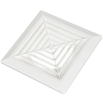 Диффузор — распределительный элемент, обеспечивающий равномерное распределение воздуха в помещении. Применяется для приточных систем вентиляции, систем кондиционирования и воздушного отопления. Изготавливается из прочного пластика. Для удобства монтажа к воздуховоду имеет присоединительную муфту. Монтируется в стены или подвесные потолки. Внутренняя часть оборудована уплотнительным кольцом для более плотного прилегания. Модель оснащена маскитной сеткой.