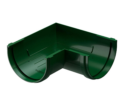Угловой элемент водосточной системы устанавливается на внешних и внутренних углах кровли и соединяет желоба.